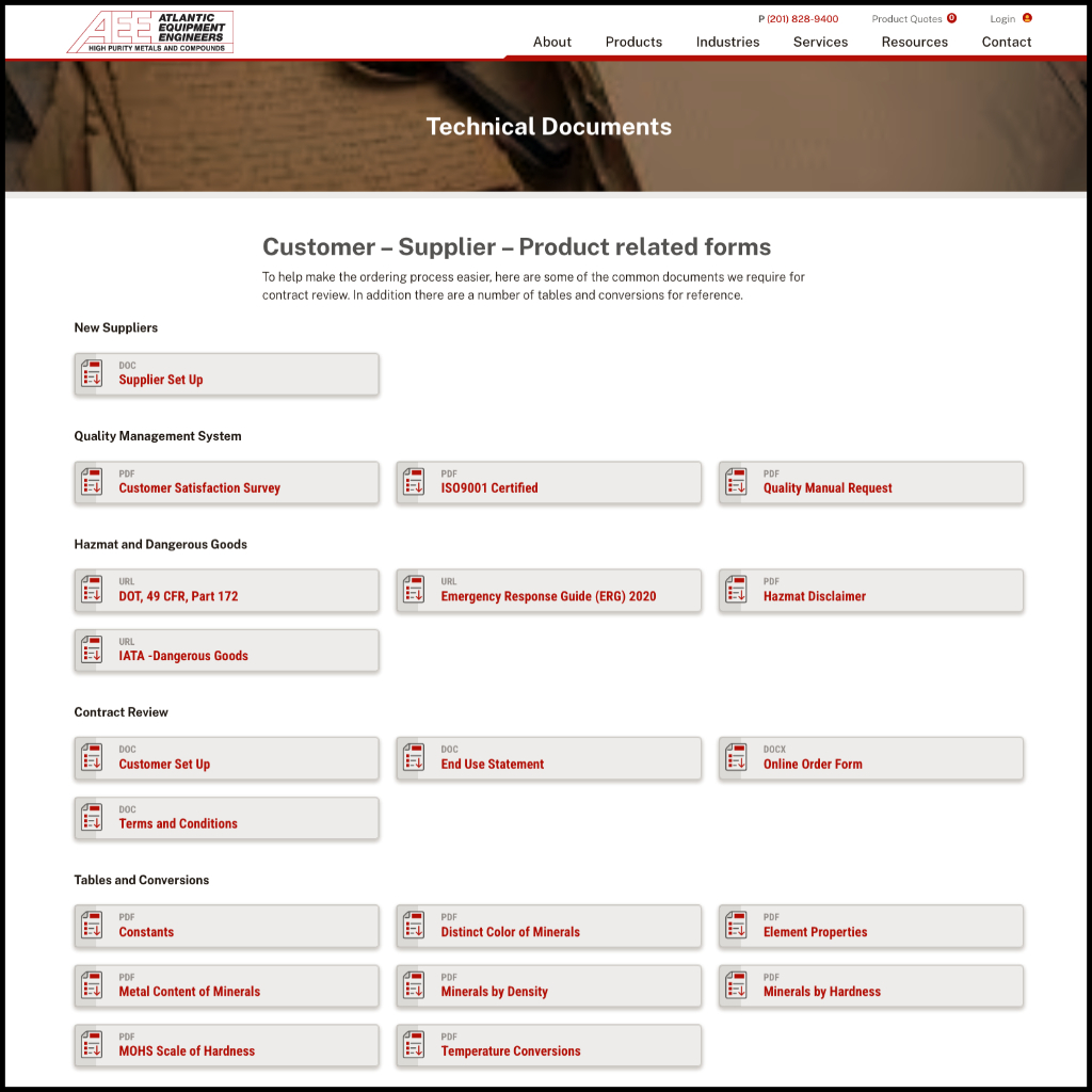 Quote-friendly browsing with organized technical downloads and a connection to Sage that improved handoffs to sales.